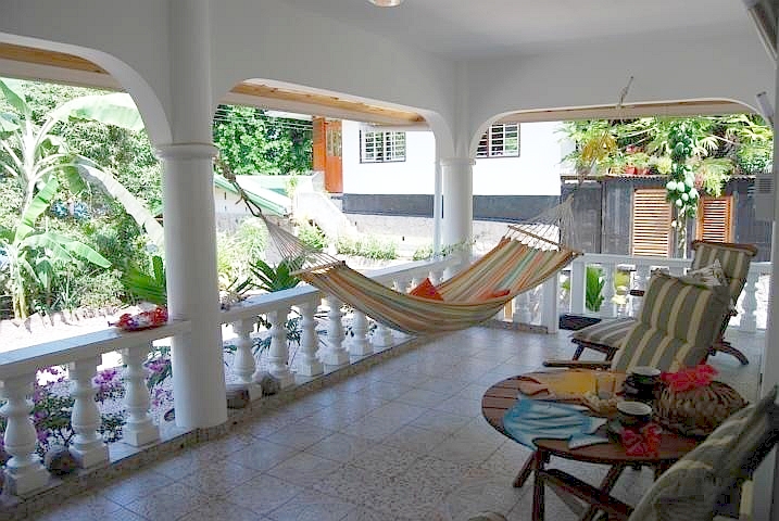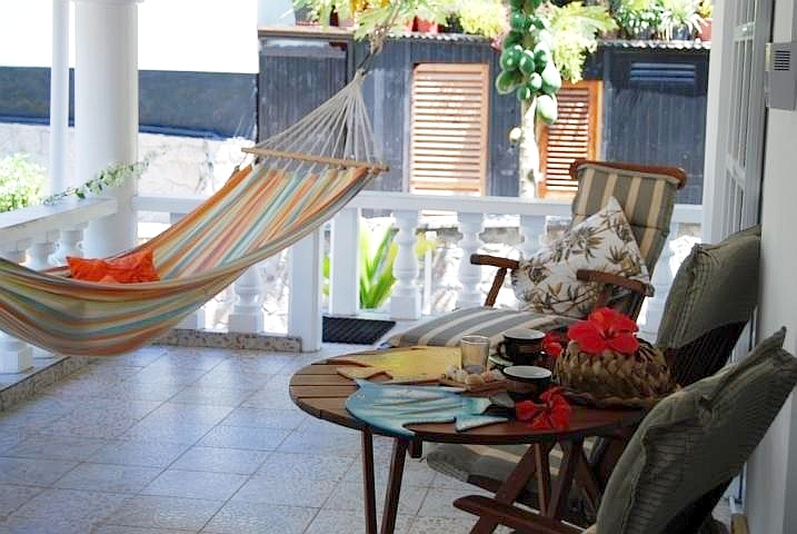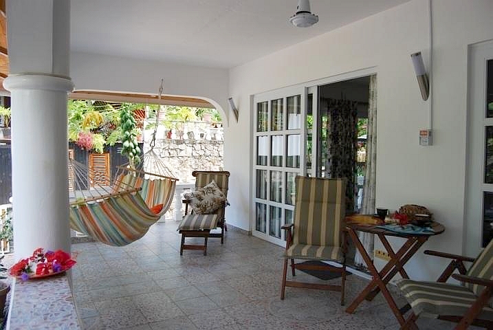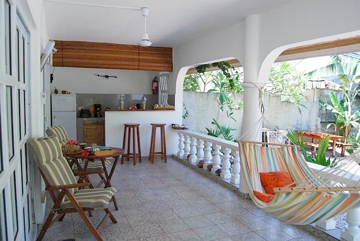Wenn Sie mal nicht am Strand sind werden Sie sich sicherlich viel auf der Sonnenterrasse aufhalten und die herrlichen Sonnenuntergänge bewundern. In unteren Apartment ist die Terrasse etwas kleiner, dafür verfügt dieses über ein zusätzliches Wohnzimmer. Die obere Terrasse is 44 m² gross, in L-Form und hat noch eine geräumige 2 Personen Hängematte zum Relaxen.