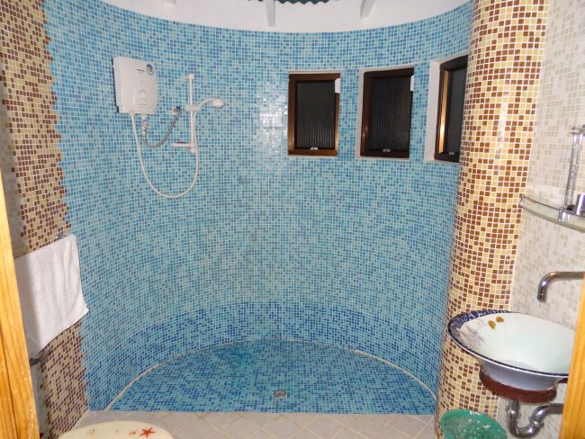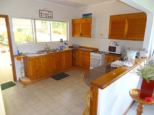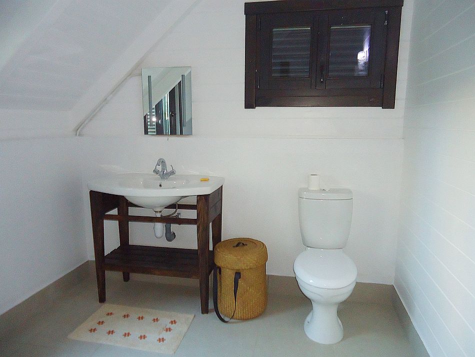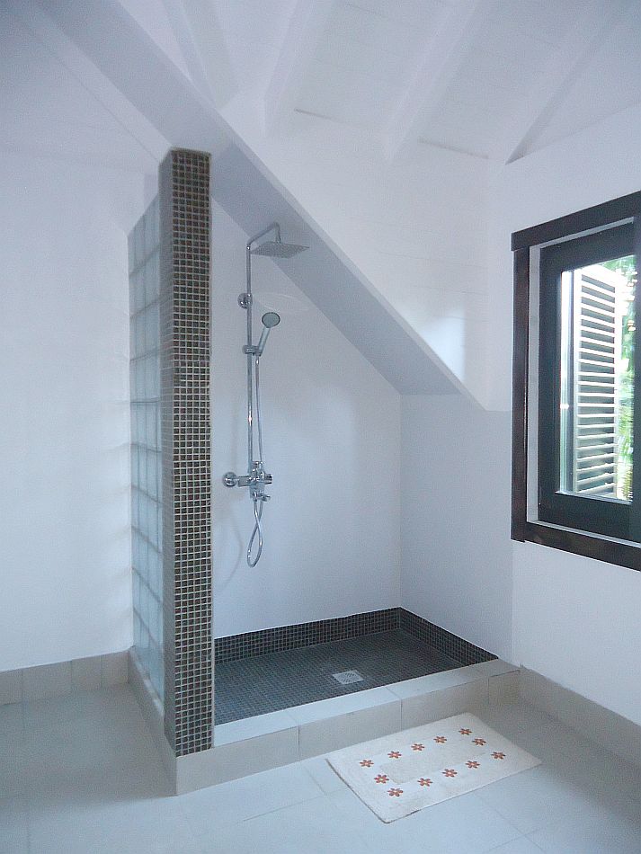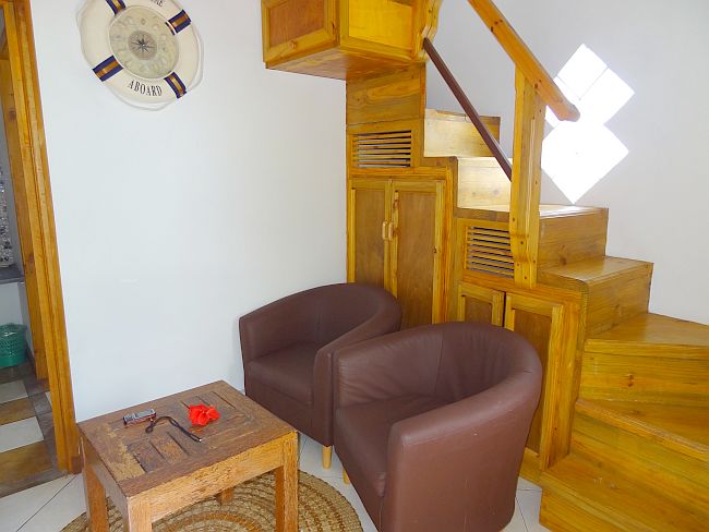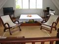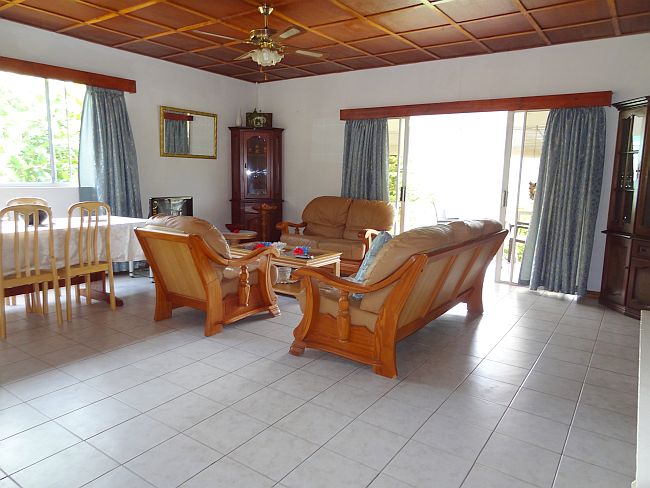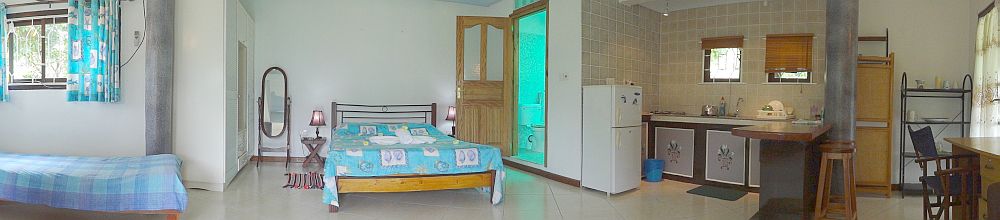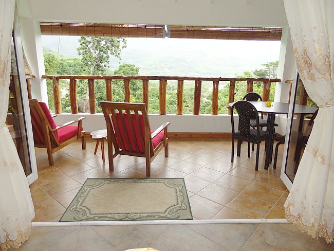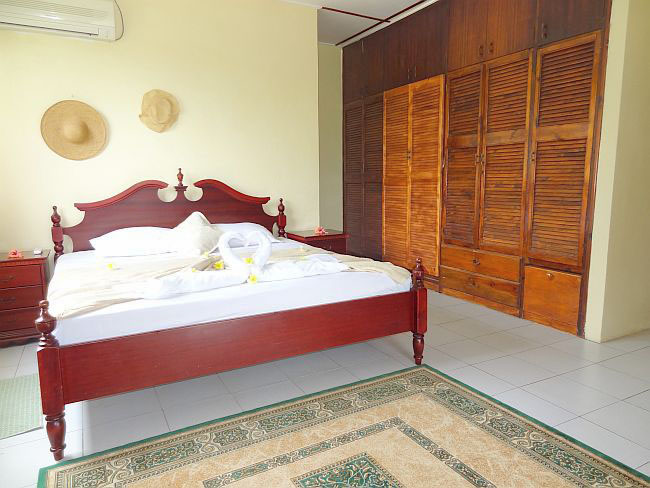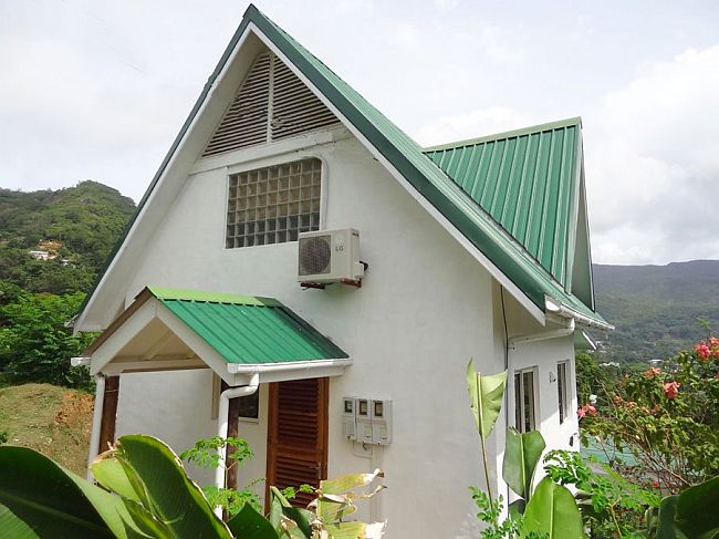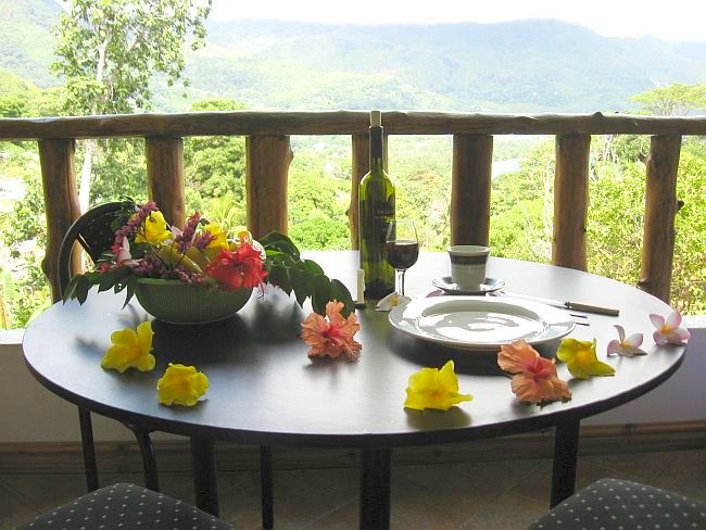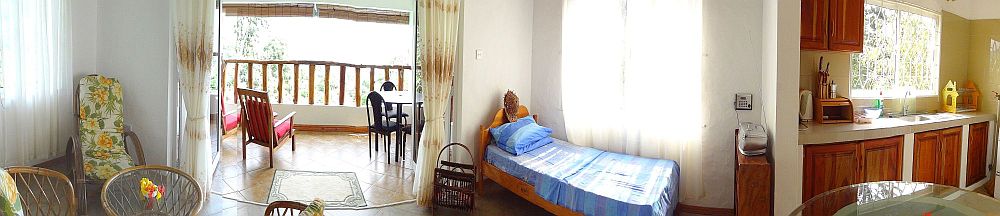 Es gibt ein sehr schönes, geräumiges Zimmer im Obergeschoss, mit eigenem Bad und schönem Blick von der Terrasse zur Beau Vallon Bucht.