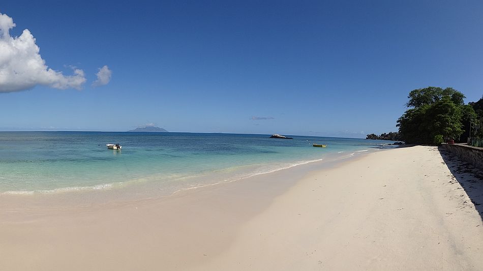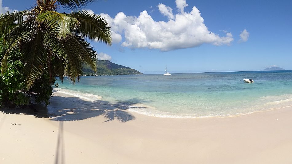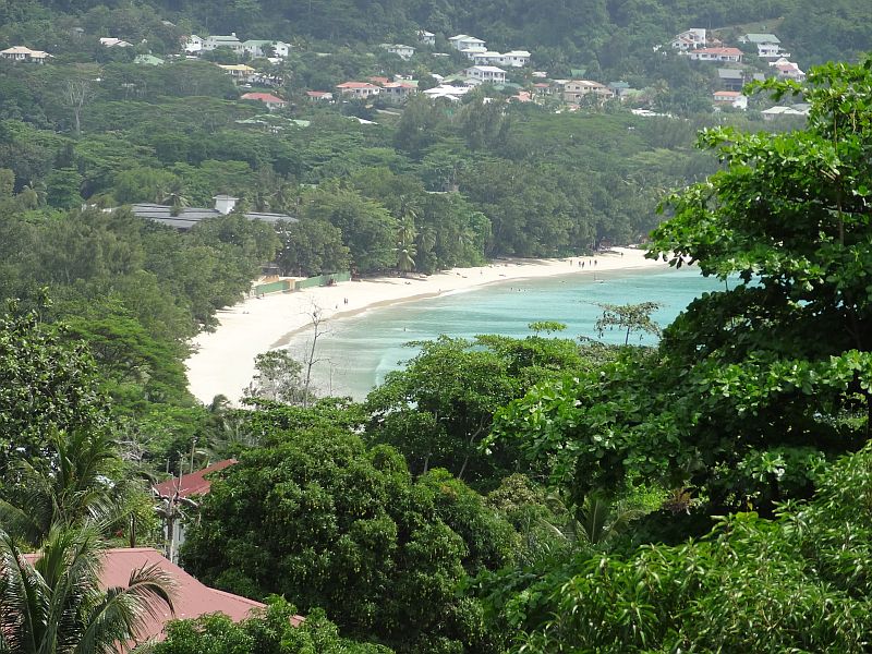 Von der Lodge sieht man schön auf die Beau Vallon Bucht.