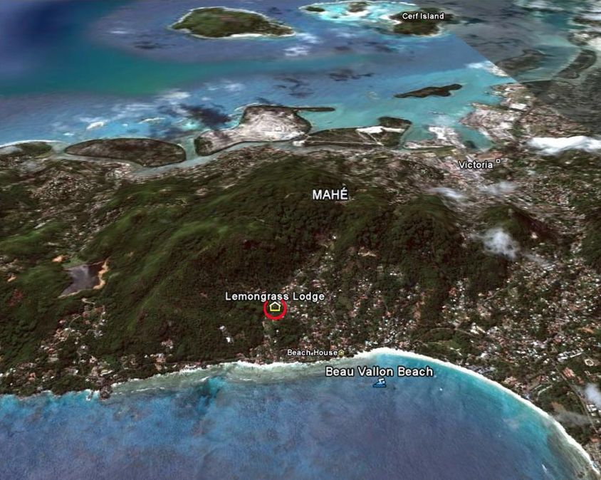 Geheimtipp: Dieses Gästehaus ist von einem wundervollen Garten umgeben, in dem viele tropische Früchte wachsen. Die Lemongrass Lodge liegt etwa 100 Meter oberhalb der weitläufigen Beau Vallon Bucht. Zu Fuss ist man in wenigen Minuten am Strand, die Entfernung beträgt etwa 400 Meter. Wir empfehlen aber ein Mietauto (bei uns zum Bestpreis erhältlich!), einerseits weil die Zufahrt ziemlich steil ist, andererseits um auch andere schöne Ecken von Mahé erkunden zu können.