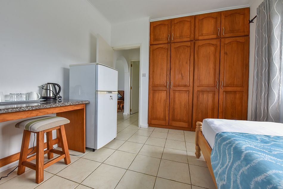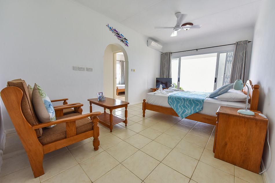 Das Oceanview besteht aus 4 Einheiten mit je einem geräumigen, klimatisierten Schlafzimmer 17 m², einem weiteren geräumigen Zimmer (ca. 6m²) und einem schönen Bad mit ebenfalls 6 m². Die Zimmer sind geschmackvoll dekoriert und mit Möbeln aus einheimischem Holz eingerichtet. Ein Kühlschrank, TV und Tee/Kaffebereiter sowie ein Safe ist in jedem Zimmer vorhanden.