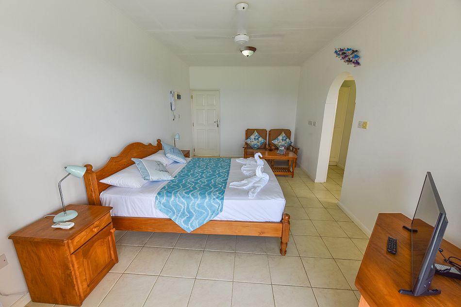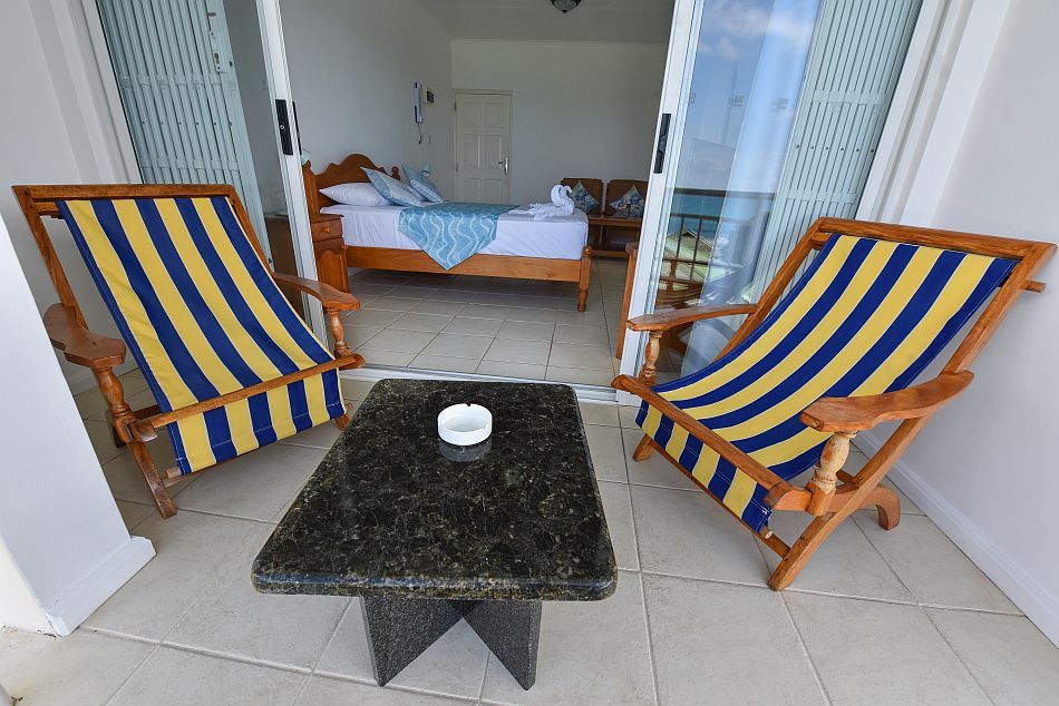 Die Zimmer im Obergeschoss haben herrlichen Meerblick, bis zur Insel Silhouette. Bitte beachten Sie, dass Kinder unter 8 Jahren im Obergeschoss leider nicht akzeptiert werden.