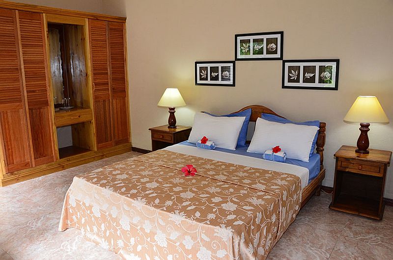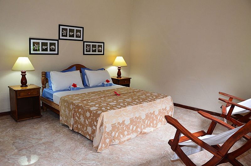 Alle sechs Zimmer werden täglich gereinigt und jedes hat ein eigenes Bad. In Ihrem Zimmer befindet sich ein großes bequemes Bett (King- oder Queensize), ein Deckenventilator und auch die Klimaanlage ist im Preis inbegriffen. Ein kleiner Minibar-Kühlschrank ist in jedem Zimmer vorhanden.